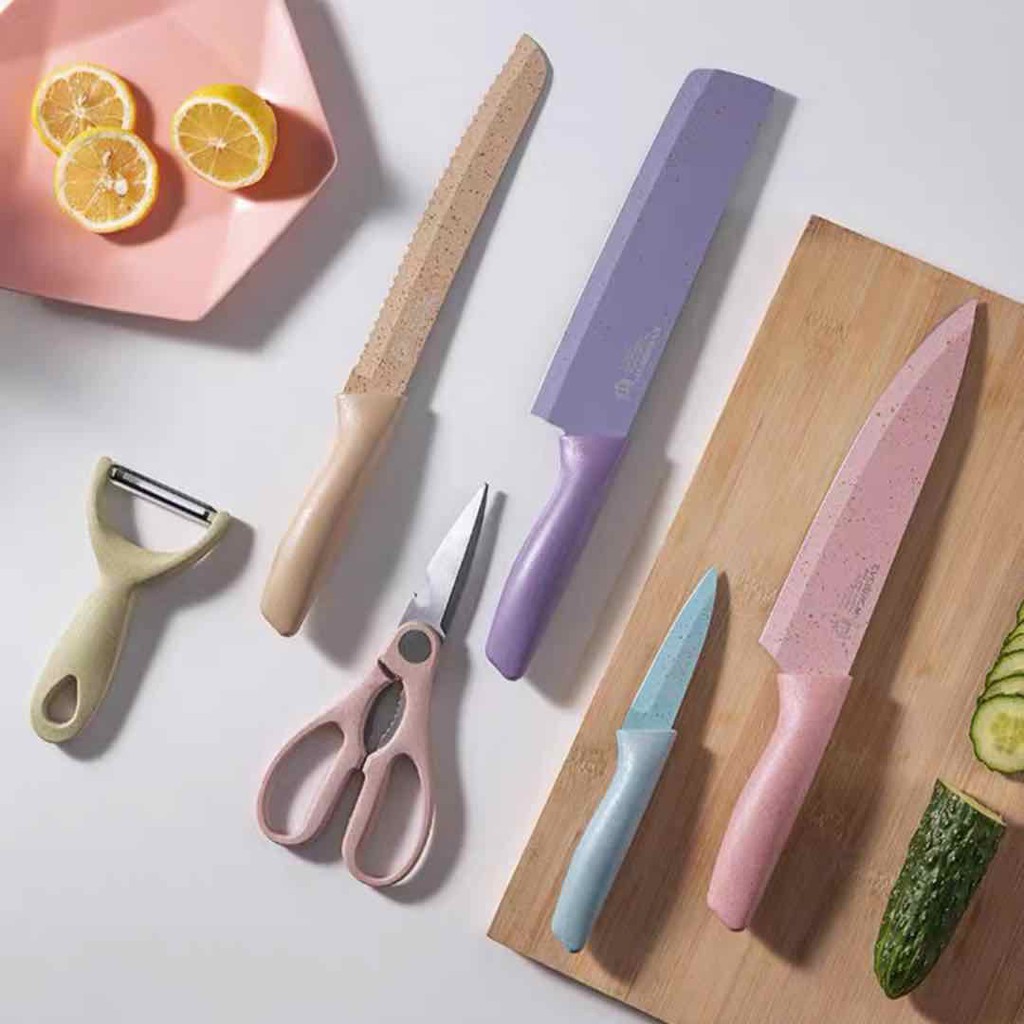 Name: Isi 6 In 1 Pisau Dapur Set Rainbow Stainless Anti Lengket Peralatan Masak Unik Bukan Stein Cookware