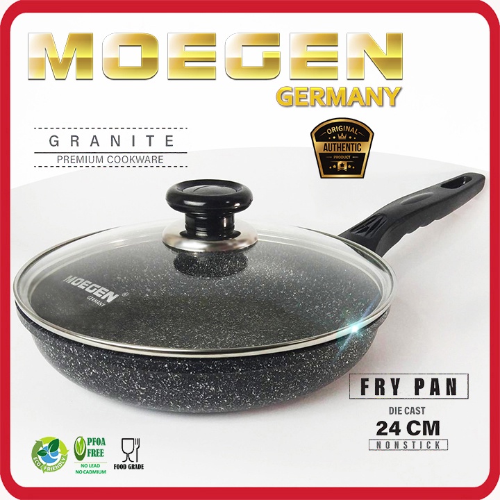 Moegen Germany Fry Pan 24cm Granite Series Anti Lengket Plus Tutup KacaOriginal MOEGEN GERMANY Dengan bahan hard diecasting dari MOEGEN yang sudah terkenal kualitasnya.Tahan gores, Anti karat dan FOOD GRADE.Feature:1. Menggunakan bahan yang aman lingkungan sehingga lebih aman daripada alat masak merk lainnya.2. Granite coating dari MOEGEN, panas lebih merata dan masakan menjadi cepat matang.3. Lapisan anti lengket terbaru dari MOEGEN.4. Tahan Gores, tahan suhu tinggi dan FOOD GRADE.5. Diameter 24 cm, tinggi 5,2cm, menjadikan memasak lebih mudah6. Handle tidak panas saat dipegang dan nyaman saat digunakan.7. Memasak dengan sedikit / tanpa minyak.8. Dilengkapi tutup kaca tempered glass lidNote : Free bubble wrap packing, Note : Disarankan agar lebih aman untuk menambahkan bubblewrap dan kardus.Please Note!!Kami menyarankan untuk menggunakan asuransi pengiriman terlebih untuk pengiriman via expedisi dalam dan keluar kota/daerah.Foto yg kami pajang adalah foto asli produk yang akan anda terima.Barang kami pastikan asli, baru dan dikirim dalam keadaan utuh dan bagus.Paket dikirim sesuai dengan standard pengiriman yang aman.Bisa langsung diorder ya kak, stok produk selalu READY.Terimaka