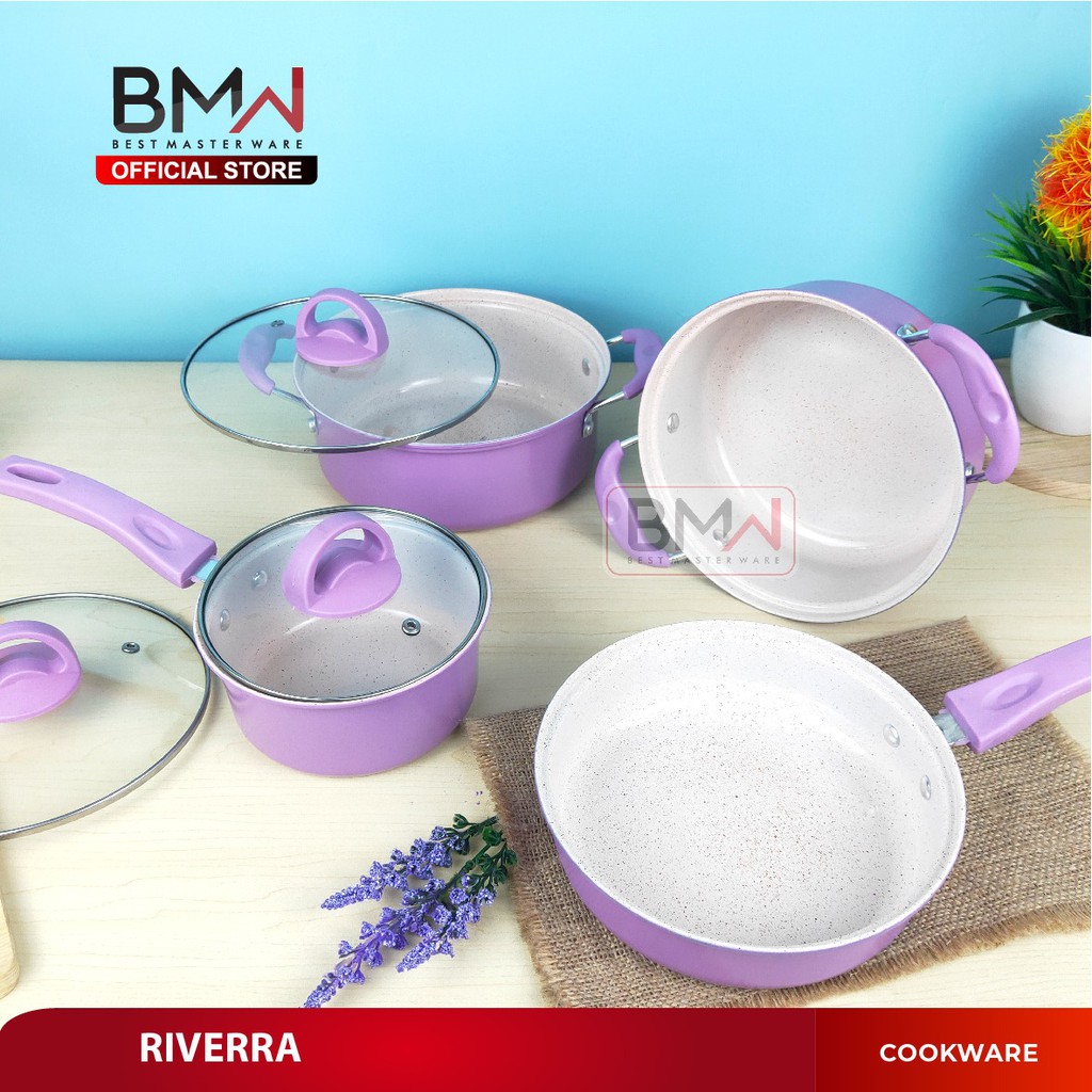 Grosir Perlengkapan di Kota Bekasi Bmw Kitchen Ware - Teflon Riverra Panci Set Warna Frypan Saucepan Cookware Set Free Spatula 13pcs dari BMW Kota Jakarta Barat