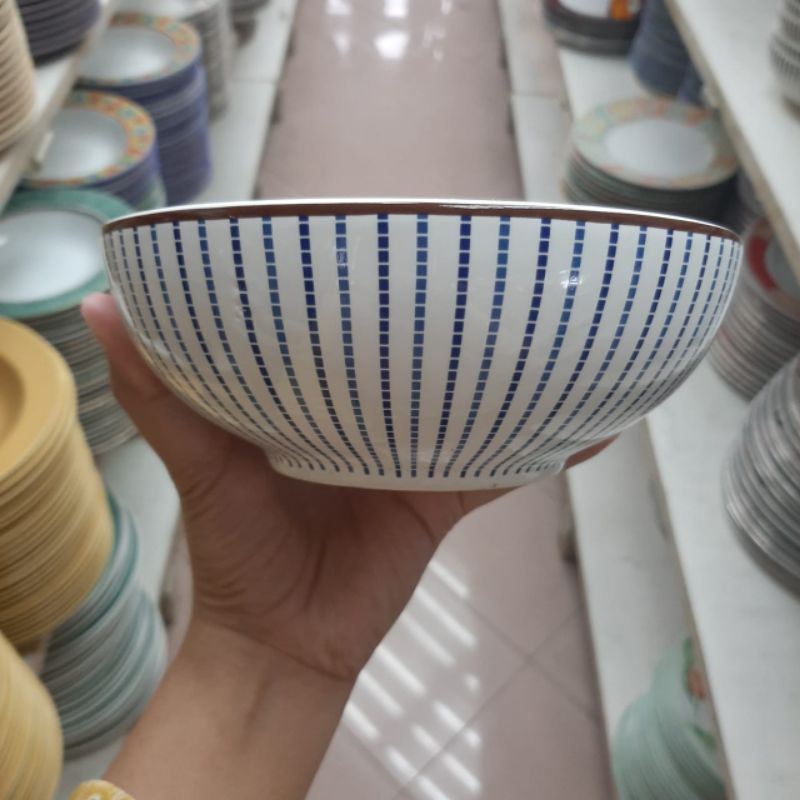 Name: Mangkok Mangkuk Keramik Sango Motif Garis Stripe Biru Putih Koleksi Dekor Dapur Cantik Antik Klasik