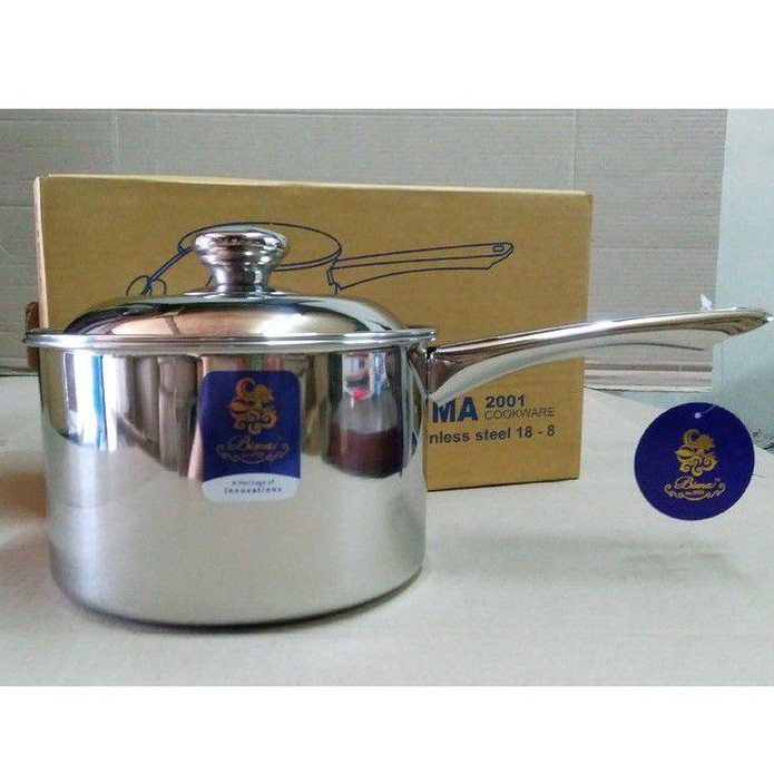 Saucepan Panci Susu Bima Element 18cm (B.200118A)Bahan Stainless Steel 304 (18/8 merupakan kode utk bahan SUS 304 yah).Diameter 18 cm. Tinggi 11cm (Foto slide ke 3).Kapasitas 2.5 literStiker di panci tidak selalu ada ya.. tergantung dr pabrik (kadang stiker putih, kdg biru dan kdg tidak ada). Label Bima selalu ada.- Setiap pengiriman barang kami packing dengan bubble wrap dan kami pastikan barang telah diperiksa (di QC) sebelum kirim.- Tidak menerima retur barang yang sudah dibeli, tidak dapat ditukar atau dikembalikan karena kami sudah melakukan packing secara baik dan benar.- Segala bentuk kerusakan yang disebabkan oleh jasa pengiriman bukan tanggung jawab kami sebagai penjual.JIKA INGIN LEBIH AMAN DISARANKAN TAMBAH EXTRA BUBBLE WRAP SAAT ORDER, BUBBLE WRAP MELINDUNGI PAKET ANDA DARI KERUSAKAN TAPI TIDAK MENJAMIN PAKET GA AKAN RUSAK KRN TERGANTUNG EKSPEDISI.Terima kasih atas pengertian dan kerjasamanya.#wajan #teflon #wajanteflon #wok #tekobima #bima #saucepot #pancibima #bahanaluminium #alatrumahtangga #wajanaluminium #wajanbima #alatmasak #wajanstainless #stainless #panci #milkpan #soupbowl #bowl #sauce