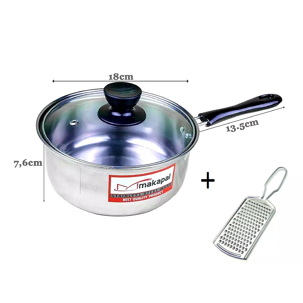 Name: Panci Susu Dp / Panci Mie Kecil / Panci Bonus Parutan 16.18.20 + Tutup Kaca Gagang Ergonomis