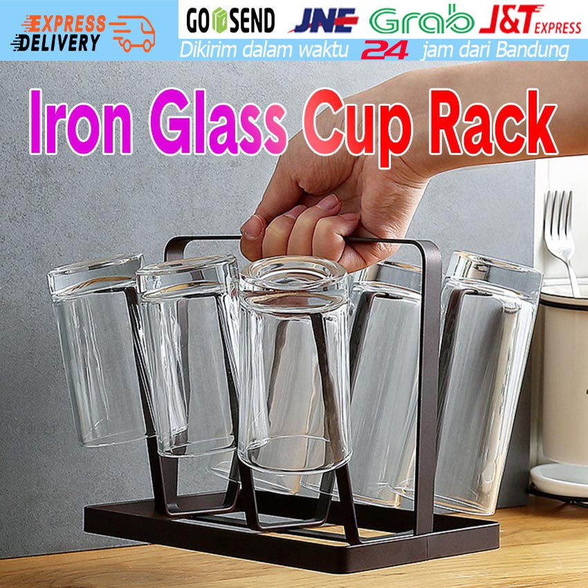 Name: 6 Slot Rak Gelas Gantung Organizer Besi Anti Karat Tempat Cangkir Rak Dapur Cup Holder Drying Rack