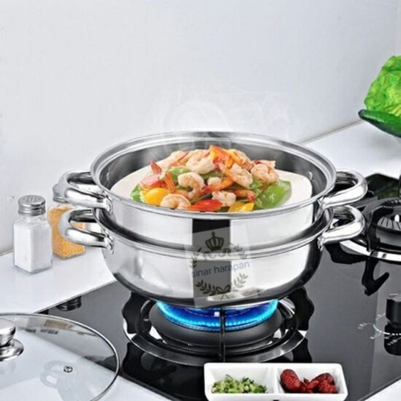 Spesifikasi :- Panci kukus susun 2 dengan bahan material stainless steel.- Dapat mengukus bakpao,dimsum,siomay dll.- Dapat juga digunakan sebagai panci biasa.- Dapat digunakan untuk semua jenis kompor.- Tutup Kaca.- Diameter