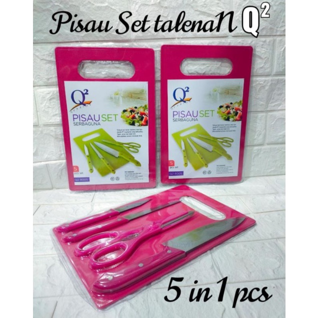 Pisau set serbaguna Q2-8005pisau set 5 in 1se kg isi 4 setTerbuat dari bahan stainless steel dan plastik PP copolymer yang berkualitas,tahan ,aman dan tidak licin,memudahkan proses memasak anda,Tersedia Pisau Set bagi anda yang menginginkan pisau set dengan yang berkualitas bagus namun terjangkau, dlengkapi dengan gunting plus talenan.1 Set Pisau ini terdiri dari 5 item/barang dan 6 kegunaan yaitu :- 1 buah pisau besar untuk memotong daging- 1 buah pisau sedang untuk memotong sayur- 1 buah pisau roti- 1 buah gunting dan pemecah pala- 1 buah talenanTips pemakaian =untuk menjaga pisau tetap tajam lebih lama digunakan.sehabis memotong bahan makanan disarankan membersihkan menggunakan air panas dan kain lapcocok buat mama muda,cocok buat bakawah mantenan,cocok juga buat kado pernikahandeskripsi dan barang realpict sesuai gambar yang kami cantumkanuntuk barang yang kami kirim sesuai ketersediaan warna ya ,tapi kualitas jaminan ya kakno returno complainmembeli berarti setujusebaiknya jika ingin complain bisa disertakan video unboxing biar kita sama berkahnyauntuk yang mau order partai bisa chat pribadi kamiselamat berbelanja