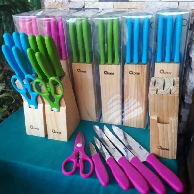 tambahkan plastik buble untuk menghindari penyokOX-961 Pisau Dapur Oxone StainlessMudah dibersihkan, Tempat pisau dari kayu pilihan1 Chef's Knife 12", 1 Bread Knife 12,5", 1 Meat knife 10"1 Utility 9,5", 1 Paring Knife 7,5", 1 Scissor 8,5"Tips: Gunakan pisau stainless Steel untuk memotong sayur dan buah karena Stainless Steel lebih aman dari pada pisau biasa. Jangan Lupa bersihkan pisau dengan air hangat sebelum untuk memotong buah dan sayuran.komentar jarang terbalas,silahkan chat untuk ketersediaan stokberikan warna pilihan lain, apabila tidak di cantumkan warna lain, akan kami kirim warna randombarang yg dikirim hanyalah yg dalam kondisi bagus(krn kepuasan konsumen adalah investasi yg sangat berharga)Terima Kas