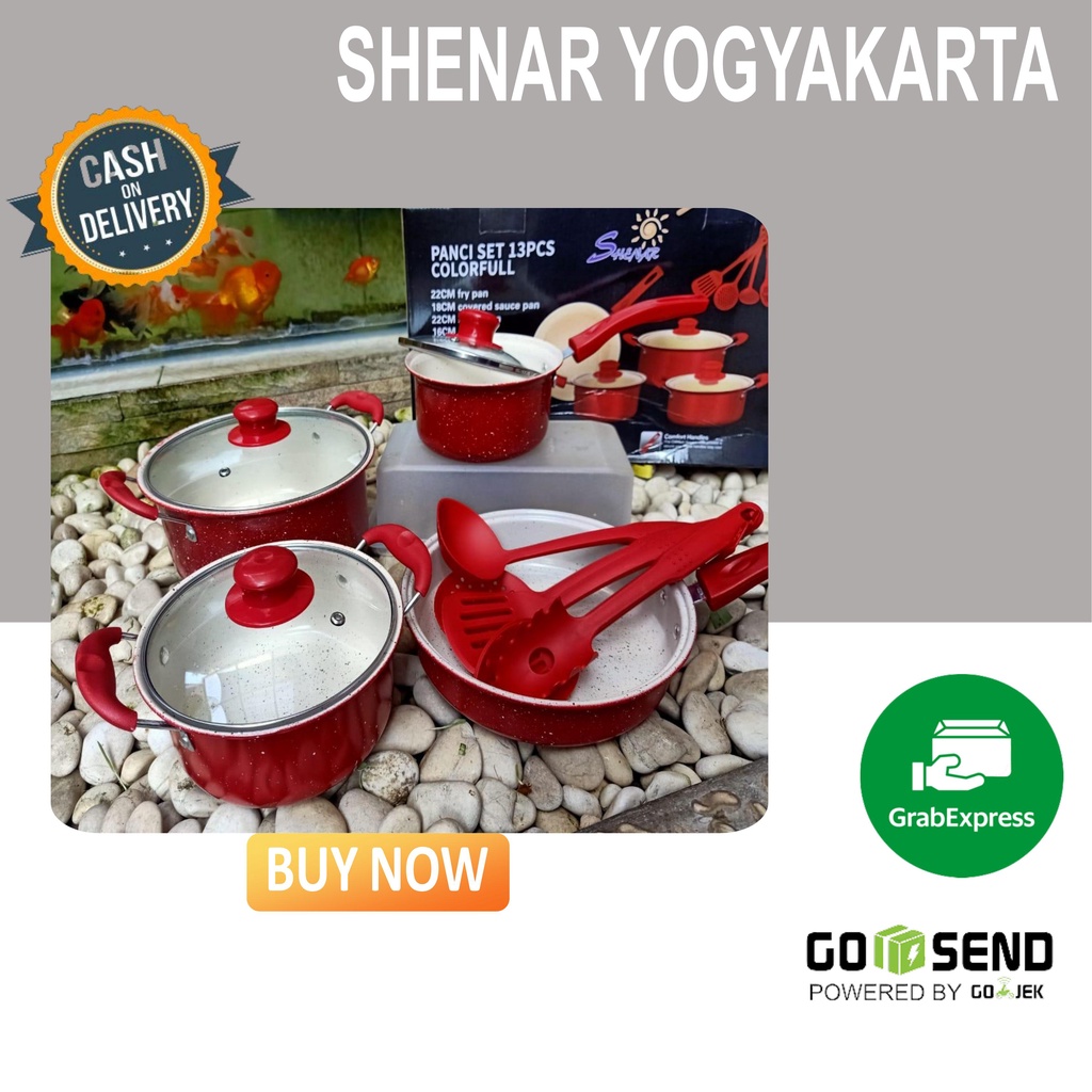 Paling Murah Perlengkapan di Kabupaten Bojonegoro (bisa Grab) Panci Set + Spatula 13 Pcs Murah/panci Set Shenar/panci Set Cantik/panci Set Warna Full Colour dari Tidak Ada Merek Kota Yogyakarta