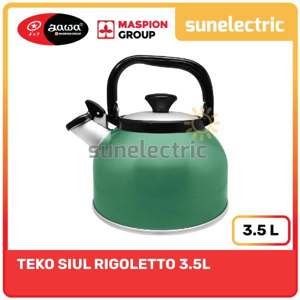 Teko Rigoleto adalah Teko Bunyi merek Mikado dari Maspion Logam Jawa. Dapat mengeluarkan suara nyaring ketika digunakan untuk merebus air. Sehingga dapat memberikan tanda bahwa air sudah panas.Terbuat dari aluminium MASPION. Aluminium adalah konduktor panas yang baik air akan lebih cepat mendidih sehingga menghemat energi dan waktu.Dilengkapi pegangan phenolic yang nyaman dan tidak menghantarkan panas ketika dipegang saat memasak.Ketinggian air di dalam teko bunyi tidak boleh melebihi batas air di bawah corong. Karena akan mengakibatkan tertutupnya aliran udara yang akan membunyikan peluit saat air mendidih.- Bunyi ketika air matang- Kapasitas 3,5 L- Bahan Aluminium- Warna yang dikirimkan acak / r
