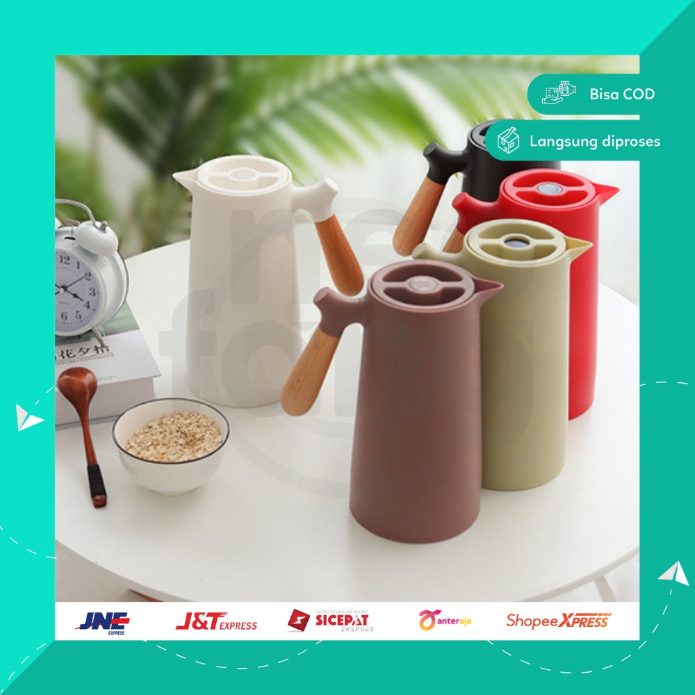 Name: (5 Warna Lengkap) Termos Teko Kaca Air Panas Gagang Kayu Elegant Cantik Kapasitas 1l 1000ml