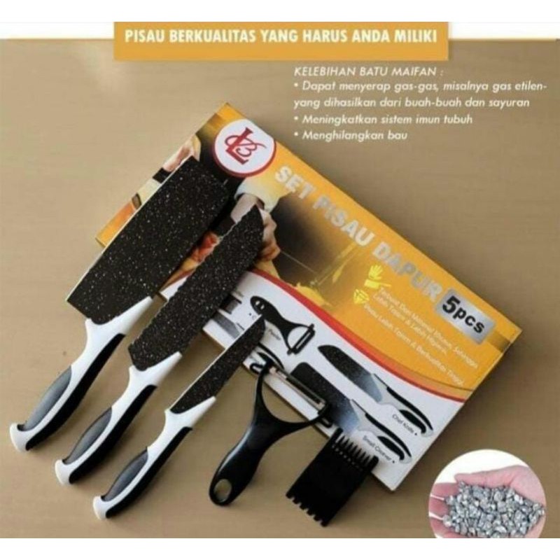 Deskripsi COD-Knife Set 5 Pcs + 1 Ceramic Peeler ( J13 )Spesifikasi: J13> 5pcs Knife Set ( Pisau Koki, 8" Pisau Roti, 8" Pisau Slice, 5" Pisau Utilitas, 3.5" Pisau Pengupas ) + 1 Pengupas Lapis Keramik.> Gagang dengan campuran batu maifan> Lapisan lapisan granit> Non Stick Coating Blade.> Dibuat untuk Koki Profesional.> Kemasan Kotak Cantik.> UKURAN PRODUK 32x17x4 cm> UKURAN PAKET 36 X 21 X 8BERAT 265 GRAMKeunggulan produk:- Dengan mata pisau berbahan dasar Stainless steel yang tajam- Lapisan anti lengket- Pegangan pisau yang tidak licin / anti slip dan ergonomis- Fitur pelindung jari untuk keamanan dan kenyamanan dalam mengenggam- Mata pisau anti bakteri- Lekukan - lekukan di mata pisau, untuk membantu melepaskan bahan makanan yang tipis setelah dipotongCatatan saat menggunakan:- Jangan meninggalkan produk di dekat api- Jangan membersihkan mesin cuci piring- Jangan mengambil risiko menggunakan tangan Anda untuk menguji ketahanan pisau Anda untuk menghindari cedera- Jauhkan produk dari jangkauan anak-anak- Bersihkan dan keringkan produk setelah digunakan untuk menghindari karat- Hanya gunakan tujuan da