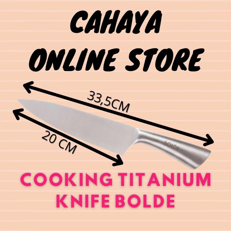 Kalian bisa membayar hampir segala hal secara on line, termasuk Knife Bolde Cooking Titanium ( Pisau Dapur Titanium ) dari tempat Ente. Cahayaonlinestore menawarkan bayak pilihan Perlengkapan , maka itu dpt memberikan makin banyak pilihan kepada customer. Membeli Knife Bolde Cooking Titanium ( Pisau Dapur Titanium ) lewat online kali ini sebagai opsi yang dapat diterima dan banyak digunakan sambil orang-orang yang mau membayar Perlengkapan untuk Saudara sendiri atau serupa hadiah untuk sahabat.