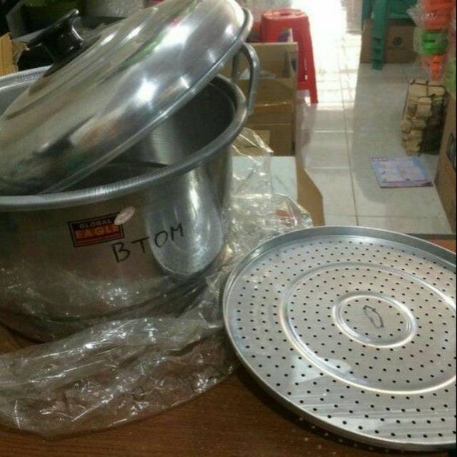 Kapasitas 5literDandang Langseng/Panci steamer 30cm Global eagleUntuk Keamanan disarankan menambah item buble wrap supaya tidak penyok ( Bila kondisi penyok kesalahan kurir dalam pengiriman dan tidak memakai tambahan Buble Wrap diluar tanggung jawab