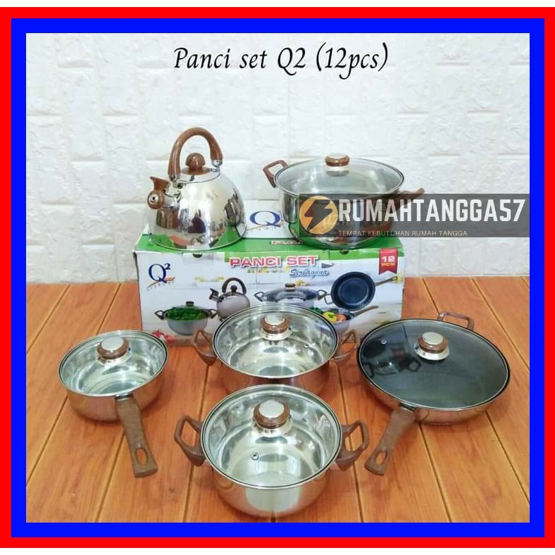 Jual Murah Perlengkapan di Kabupaten Kendal Panci Set Q2 8212 12pcs Stainless Soup Pan / Panci Set Serbaguna Q2 8212 Q2-8212 Q28212 Ori Q2 dari Q2 Kota Surabaya