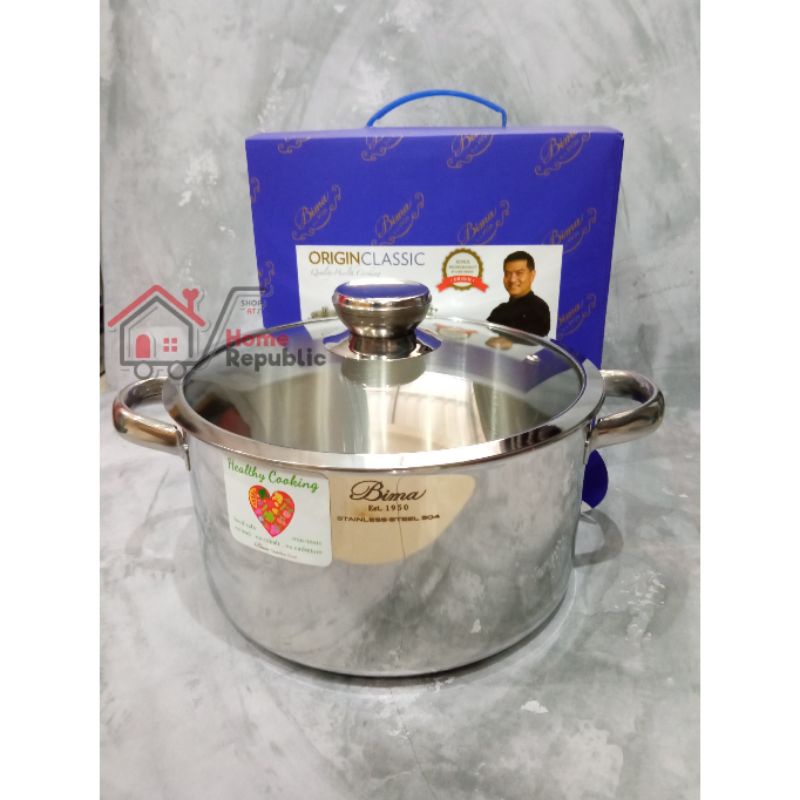Agen Perlengkapan di Kabupaten Banyumas Panci Bima Origin Classic Saucepot 24cm B2001224 Sus304 1ply Stainless Tutup Kaca Panci Stainless dari Homerepublic Kota Jakarta Utara