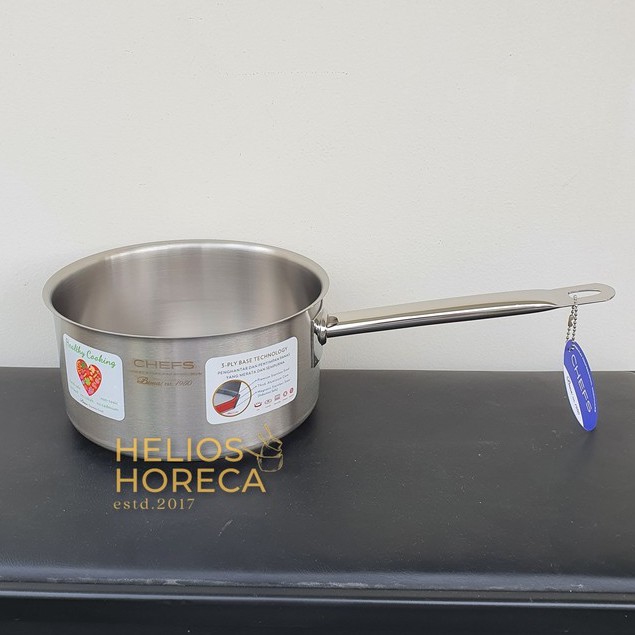 BERAT BARANG ADALAH KATEGORI BERAT VOLUME DENGAN PACKING BUBBLE + DOUBLE LAPIS KARDUSDiameter 20 cm, Tinggi 9 cm, Kapasitas 2,8 literSebagai seri komersial, Chefs series dilengkapi dengan teknologi dan inovasi yang tinggi dan modern, untuk distribusi panas merata dan daya tahan tinggi guna memenuhi kebutuhan dapur profesional maupun rumah tangga.Saucepan yang terbuat dari material SUS 304 dengan teknologi 3-ply di bagian bawah panci.Bagian bawah saucepan menggunakan lapisa Tri-Ply untuk durabilitas tertinggi, panas yang cepat dan merataBisa untuk kompor:1. Gas2. Listrik3. Induksi4. Ceramic5. Ha