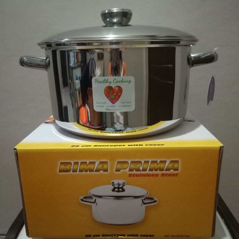 Panci Saucepot 26cm B.2007026Diameter 26 cm. Tinggi 14 cm. Kapasitas 7.5 liter. Cocok utk memasak kuah2 seperti sop, soto, rawon dll utk 10 org keatas.Bahan Stainless Steel Inox Premium. Inox Premium adalah Premium Stainless Steel bertaraf internasional dengan komposisi yang food safe dan membuat polishing lebih mengkilap, dan panci lebih kuat untuk pemakaian jangka lama. - Setiap pengiriman barang kami packing dengan bubble wrap dan kami pastikan barang telah diperiksa (di QC) sebelum kirim.- Tidak menerima retur barang yang sudah dibeli, tidak dapat ditukar atau dikembalikan karena kami sudah melakukan packing secara baik dan benar.- Segala bentuk kerusakan yang disebabkan oleh jasa pengiriman bukan tanggung jawab kami sebagai penjual.JIKA INGIN LEBIH AMAN DISARANKAN TAMBAH EXTRA BUBBLE WRAP SAAT ORDER, BUBBLE WRAP MELINDUNGI PAKET ANDA DARI KERUSAKAN TAPI TIDAK MENJAMIN PAKET GA AKAN RUSAK KRN TERGANTUNG EKSPEDISI.Terima kasih atas pengertian dan kerjasamanya.#teko #stainless #panci #tekoaluminium #tekobima #bima #saucepot #pancibima #bahanstainless #alatrumahtangga #alatmasak #pancistai