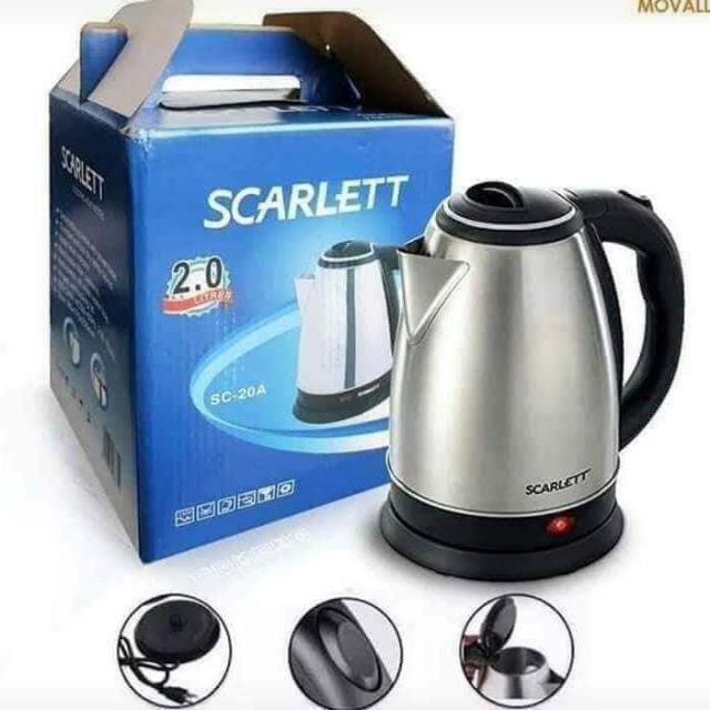 2 L ] Teko Listrik / KETTLE ELECTRIC Pemanas Air StainlessMERK SCARLETFitur dan keunggulan :- Bagian dasar ceret yang dapat dilepas- Rancangan yang sempurna dengan inovasi baru- Aman, praktis dan nyaman digunakan- Cocok digunakan di dalam maupun di luar ruangan- Dapat diputar 360 DERAJAT- Fitur Power OFF otomatis- Fitur perlindungan kelebihan panas (Lampu indikator)- Pegangan plastik berbahan PP- FADA ControllerFitur anti kekeringan( tidak akan melakukan proses pemanasan jika di dalam ceret tidak ada air dan perlindungan kelebihan panas ( overheat )Spesifikasi :Tegangan : 220-240VFrekuensi : 50/60HzDaya : 2000 WattKapasitas : 2.0 LiterKetebalan badan ceret