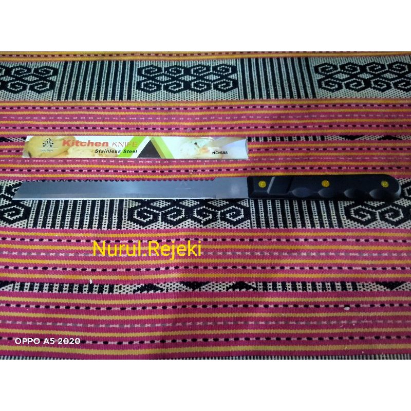 pisau roti dengan 2 sisi mata pisau : biasa dan bergerigipanjang keseluruhan 32cmpisau stainless dengan gagang pl