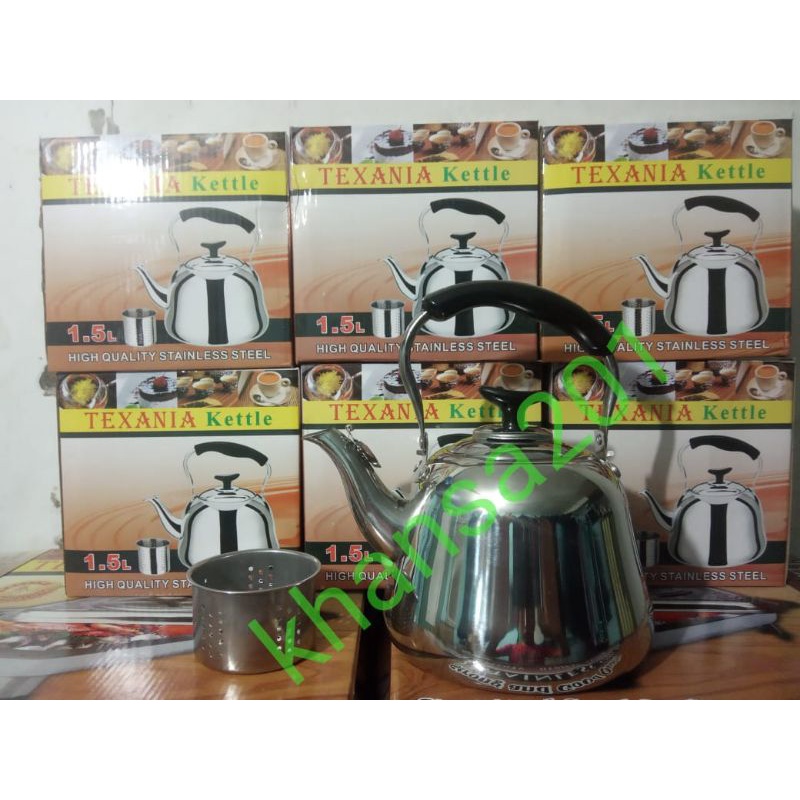 Teko Stainless texania 1,5 L.- teko dengan kualitas premium anti karat- dilengkapi saringan untuk menyeduh kopi atau teh- menyerap panas dengan cepat sehingga hemat energy, lebih cepat panas- gagang anti panasDaya tampung : 1.5 literUkuran : diameter 16 cm.Untuk keamanan packing/pengiriman,,Silahkan add bubble dietal